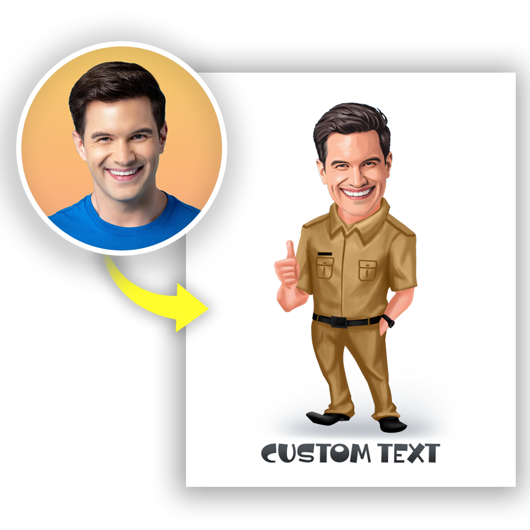 - Personalization: We will transform your photo into a caricature of a police officer, creating a one-of-a-kind image that perfectly captures both the professionalism and humor of the person.